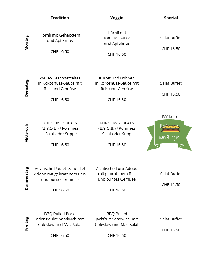 Herzlich willkommen im The Ivy Kitchen, dem modernen und gemütlichen Restaurant in Bümpliz, direkt im Herzen des Berner Technologieparks. Bei uns erwartet Sie eine frische und saisonale Küche, die perfekt für Ihre Mittagspause oder ein entspanntes Essen in angenehmer Atmosphäre ist.